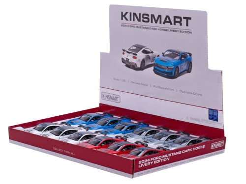 Kinsmart Ford Mustang Dark Horse Livery 12,5 cm 1:38 kov zpětný chod - mix barev (červená, modrá, bílá, šedá)