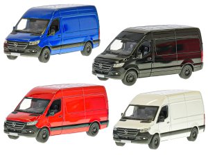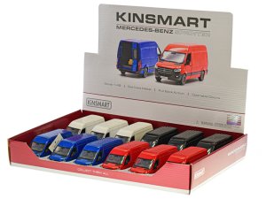 Kinsmart Mercedes-Benz Sprinter 13 cm kov na zpětný chod - mix barev (bílá, černá, modrá, červená)