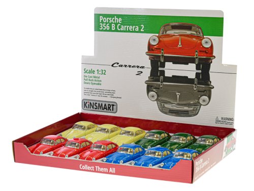 Kinsmart Porsche 356 B Carrera kov 1:32 13 cm na zpětný chod - mix barev (červená, krémová, modrá, zelená)