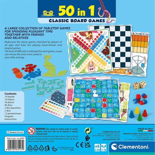 Krabice plná zábavy obsahuje sadu klasických stolních her, se kterou strávíš příjemné hodiny ve společnosti rodiny a přátel. Hra je určená pro 1-10 hráčů.