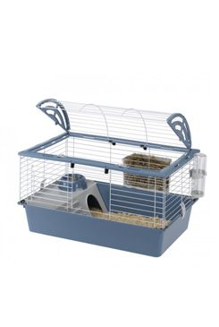 Vybavení klece: úkryt a odpočívadlo 2v1, napáječka, vnější seník a miska. Rozměry (cca): vnější: 96 × 57 × 56 cm vnitřní: 91 × 53 × 53,5 cm Materiál: recyklovaný plast a kov Barva: Dle aktuální skladové zásoby dodavatele.