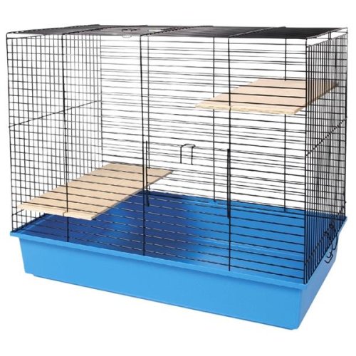 Klec s dráty ošetřenými barvou vhodná pro činčily, potkany, veverky a další drobné savce. Vybavení: 2 dřevěná patra. Rozměry: 71 x 40 x 63 cm (šířka x hloubka x výška)