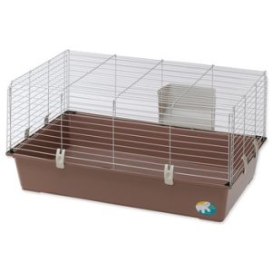 Prostorná klec Rabbit 100 pro králíky a morčata má celou přední stěnu otvíratelnou, což usnadňuje čištění klece a manipulaci se zvířetem.