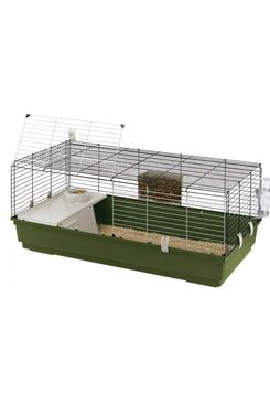 Prostorná klec Rabbit 120 pro králíky a morčata má celou přední stěnu otvíratelnou, což usnadňuje čištění klece a manipulaci se zvířetem. V případě potřeby lze otevřít pouze jednu polovinu přední stěny. Dráty klece jsou ošetřené antikorozní barvou bezpečnou pro zvířata. Všechny části klece jsou z recyklovaných materiálů. Vybavení klece: úkryt a odpočívadlo 2v1, napáječka, vnější seník a miska. Rozměry (cca): vnější: 118 × 58,5 × 49,5 cm vnitřní: 115 × 55 × 47,5 cm Materiál: recyklovaný plast a kov Barva: Dle aktuální skladové zásoby dodavatele.