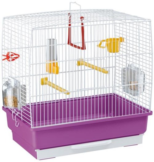 Klec pro malé ptáky klasického obdélníkového tvaru – ideální pro kanárky a drobné exoty. Dráty klece ošetřeny zdravotně nezávadnou bílou barvou. Spodní část je zhotovena z kvalitního pevného, netoxického plastu a má vysunovací dno usnadňující čištění. Klec je opatřena na horní straně držadlem pro přenášení. Vybavení: krmítka, napáječka, bidýlka. Rozměry: délka 40 cm, šířka 25 cm, výška 41 cm