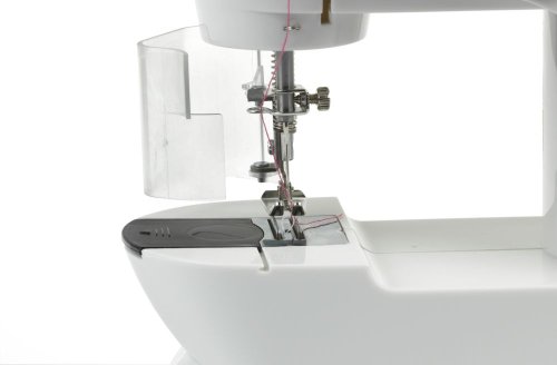 Funkční šicí stroj. Balení obsahuje: Šicí stroj, nožní pedál, 6 kovových cívek, náhradní jehlu, navlékač nití. Plastový kryt jehly, který chrání před poraněním.