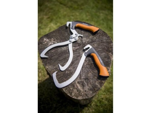 Kleště na klády o maximálním průměru 20 cm pro zvedání a přenášení polen a klád. Jsou vhodné pro asistenci při kácení. Mají plastovou, pohodlně uchopitelnou rukojet tlumící nárazy a plastové pouzdro pro snadné přenášení na pracovním opasku. Šířka: 180 mm, délka: 303 mm, váha: 780 g. Původní Fiskars číslo: 126031.
