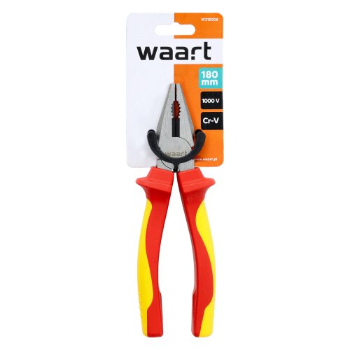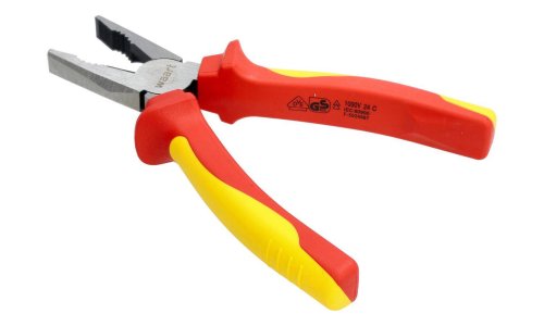 Izolované kombinované kleště 180 mm / 7", 1000 V s certifikátem VDE/GS. Dvoubarevná rukojeť TPE, použitelná od -25 ± 3 stupňů do 70 stupňů.
