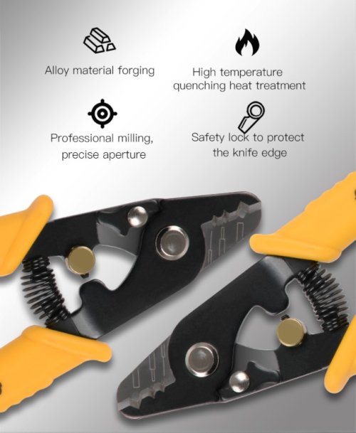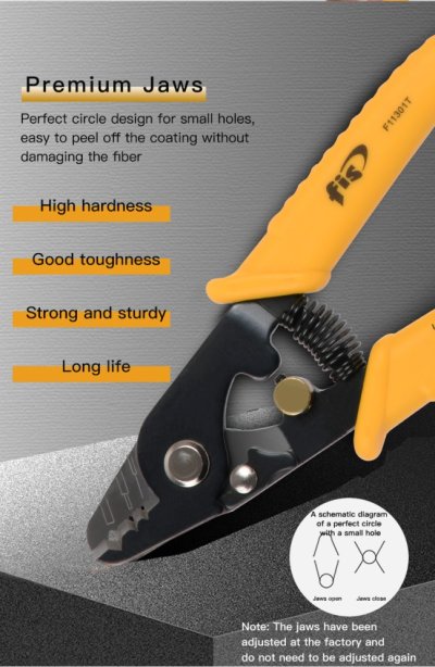 Praktická a odolná konstrukce se 3 různě velkými otvory vám umožní snadné odstranění gumy z kabelů a zároveň minimalizuje ztráty, zbytky nebo případné poškození vláken. Kleště si bez obav poradí s izolačním materiálem o tloušťce 250 µm až 3 mm, stačí si vybrat velký, střední nebo malý otvor. Vždy dosáhnete těch nejpreciznějších výsledků.