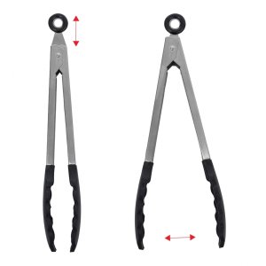 Praktické děrované kleště / obracečka na maso, saláty, pečivo apod. Vhodné použít i při grilování. Jednoduchou manipulací závěsného očka dochází k uzavření kleští. Čelisti jsou vyrobeny ze silikonu odolného teplotám až do 230°C. Rukojeť kleští je kovová. Délka 27 a šířka 4 cm. EAN 8592381150853