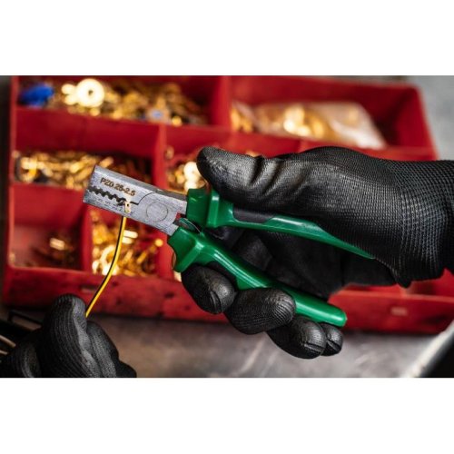 Odolné čelisti - vyrobené z materiálu CrV umožňují přesné krimpování konektorových svorek Dvoukomponentní rukojeť - zlepšuje ergonomii a zvyšuje pohodlí při práci Mechanismus roztahování čelistí - speciální …