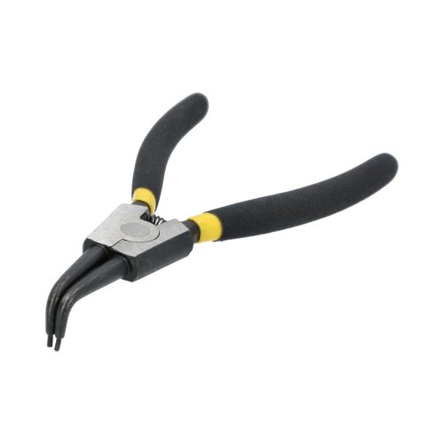 Kleště na vnější pojistné kroužky v zahnutém provedení k montáži a demontáži. Kleště se používají na upevňování ložisek na hřídelích nebo otvorech.