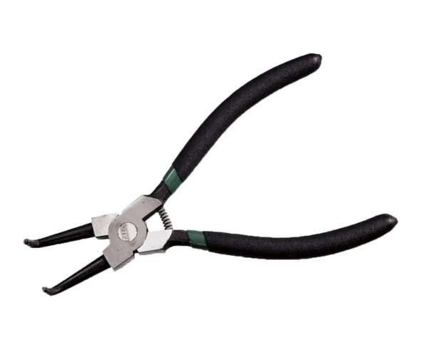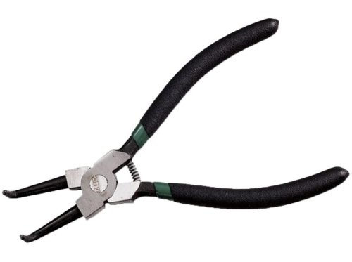 Kleště segrovky na vnější pojistné kroužky, v zahnutém provedení, k montáži a demontáži.