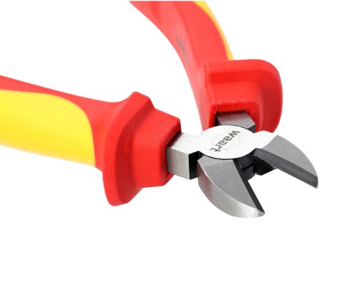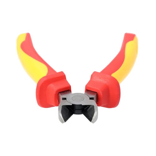 Izolované boční kleště 180 mm / 7“, 1000 V s certifikací VDE / GS. Materiál 60CrV w / leštěné, kalené, tvrdost ostří cca 58-62 HRC. Dvoubarevná rukojeť TPE, lze používat od -25 ± 3 stupňů do 70 stupňů.