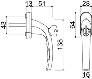 Hliníková uzamykatelná okenní klika se zinkovým jádrem.