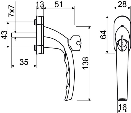 rozměr čtyřhranu: 7 x 7/35 mm povrch: F4 – bronzový fluorcarbon hmotnost netto: 0,19 kg