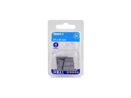 Klínek č.2 k zajištění upevnění různých druhů nářadí (sekery, kalače, kladiva, motyky apod.) na topůrkách či násadách.