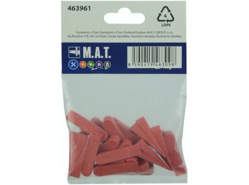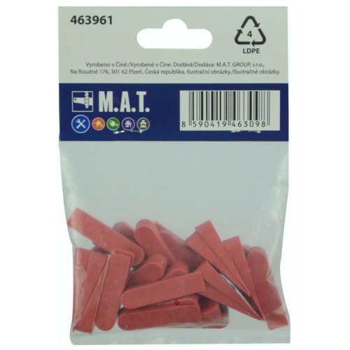 množství: 30 ks balení: blistr s eurootvorem Klínky obkladačské slouží k zajištění stejné šířky a linie spár při obkládání a dláždění.