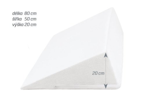 Klínový podhlavník s bavlněným froté potahem. Skvělá pomůcka do postele při čtení. Podhlavník vám pomůže udržet horní polovinu těla ve zvýšené poloze a usnadní vám lepší dýchání. Povlak je snímatelný se zapínáním na zip.