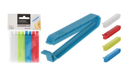 Klip na pevné uzavření sáčků a potraviny v nich pak neosychají, nepřebírají pachy a chutě z jiných uložených potravin.
