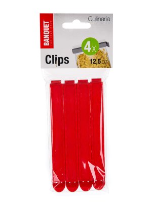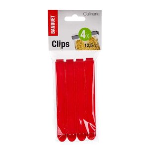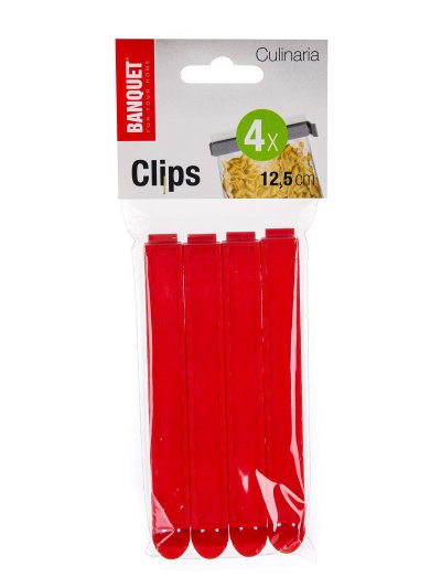 Sada klipsů CULINARIA je vhodná na uzavření sáčků, aby se do potravin nedostal prach ani jiné nečistoty. Balení obsahuje 4 ks v zelené nebo červené barvě o velikosti 12,5 cm.