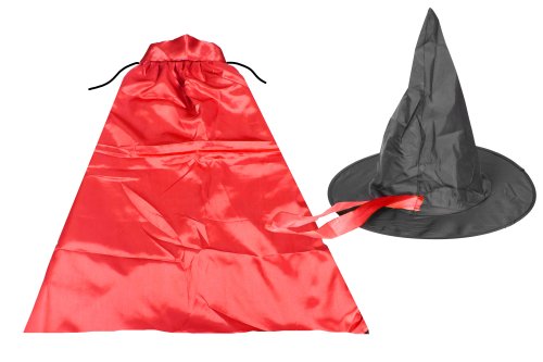 Čarodějnický plášť s kloboukem budou skvělým kostýmem na halloweenskou párty nebo na karneval! Vybrat si můžete červenou nebo fialovou variantu.