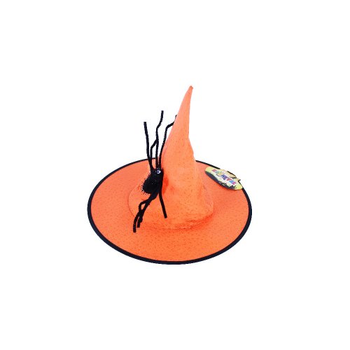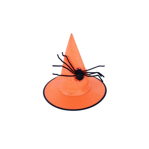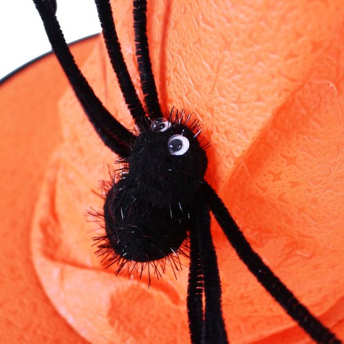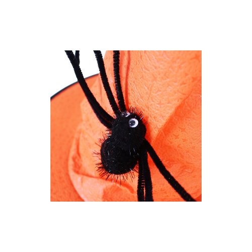 Klobouk v Halloween stylu! Oranžový klobouk s černým lemováním a pavoukem je tím pravým doplňkem na tvou halloween párty.