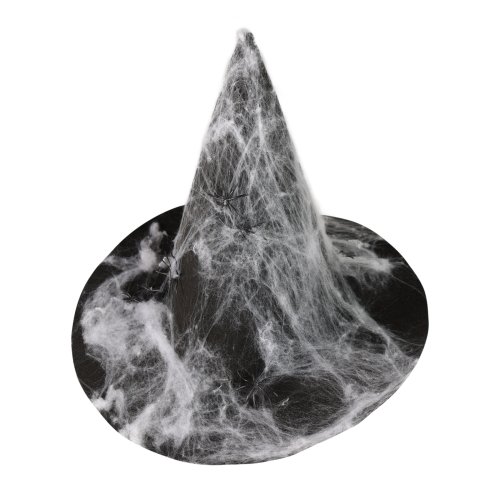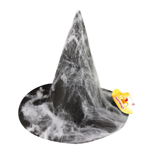 Čarodějnický klobouk s pavučinou, která vypadá jako opravdová! Klobouk černé barvy je určen pro dospělé, je potažen pavučinou a mini pavouky. Klobouk je vyroben z filcu. Perfektní doplněk na Halloween párty nebo karneval!