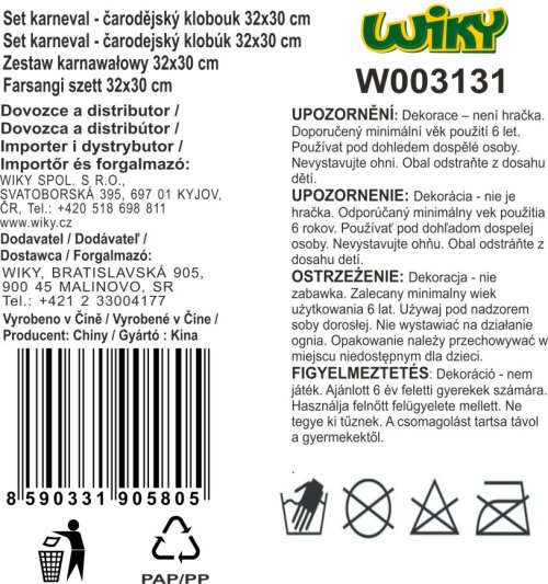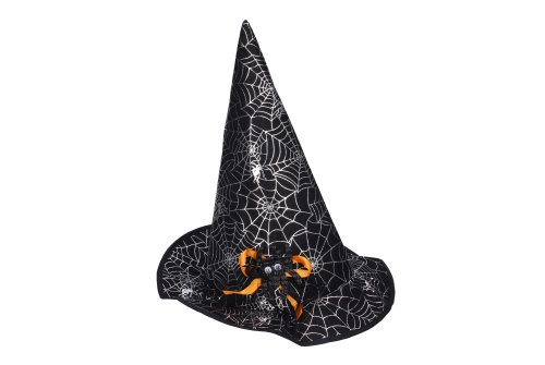 Černý klobouk s pavoukem a stříbrnými pavučinami bude skvělým doplňkem pro všechny malé čaroděje! 3 barevné provedení: černý, červený, fialový.