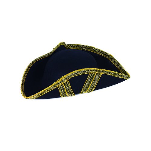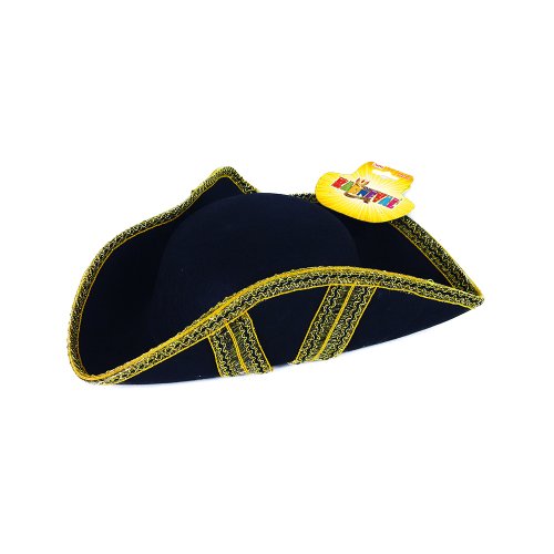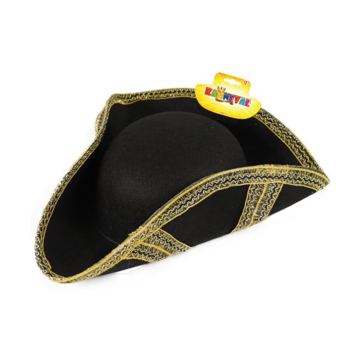 Krásný klobouk jako pro opravdové piráty! Tento černý elegán o průměru 20 cm je určen pro dospělé a je zdoben zlatým lemováním. Perfektní doplněk ke kostýmu piráta!