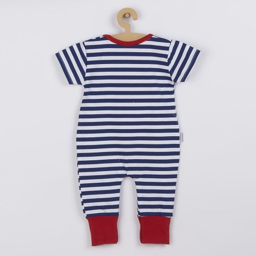 Letní bavlněný overálek české značky New Baby Marine pro miminka. Overálek je celopotištěný moderními pruhy s krásnou nášivkou lodičky. Nášivka je podlepená látkou proti poškrábání. Zapínání na ramínku a mezi nožičkama usnadňuje oblékání a přebalování miminka. Pro miminka je overal důležitým kouskem oblečení a při jakémkoliv pohybu jsou zádička miminka stále přikrytá. Složení: 100% bavlna.