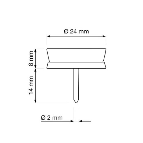 • Filcový kluzák s hřebem o průměru 24 mm anebo 28mm v hnědé barvě