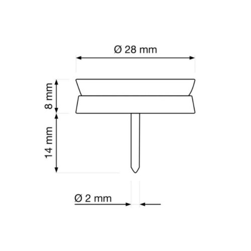 Filcový kluzák s hřebem o průměru 24 mm anebo 28mm v bílé barvě K přibití pod nábytek, se kterým pohybujete po podlahách s kluzným povrchem a chcete předejít jejímu poškrábání Ideální pro tichou manipulaci …
