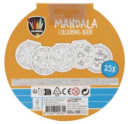 Nádherná kniha omalovánek obsahující 25 listů s různými motivy mandal, 15x15 cm