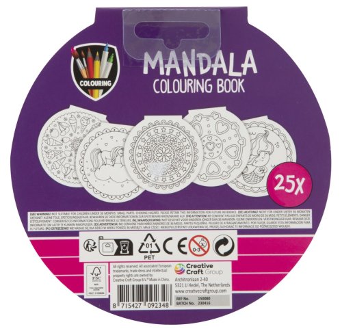 Nádherná kniha omalovánek obsahující 25 listů s různými motivy mandal, 15x15 cm