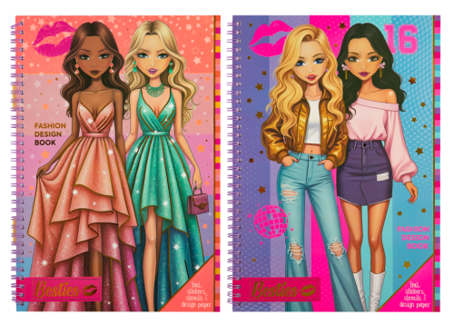 Staňte se módním návrhářem! Tento kreativní sešit je perfektní pro rozvíjení fantazie a stylu. Děti si v něm mohou navrhovat vlastní módní kolekce, kombinovat oblečení, doplňky a barvy. Sešit je skvělým nástrojem pro vytváření designových skic a trénování módního citu.Designové stránky: Obsahuje desítky stránek s předtištěnými figurami (modelkami) nebo siluetami oblečení připravenými k navrhování. Šablony (Stencils): Desky se šablonami pro snadné obkreslování různých částí oblečení (sukně, topy, kalhoty, rukávy).Samolepky (Stickers): Archy samolepek, které slouží k dekoraci a dodání finálních detailů (doplňky, boty, vzory, šperky).