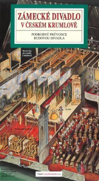 Kreslená panoramatická mapa budovy zámeckého barokního divadla s podrobným ilustrovaným průvodcem.