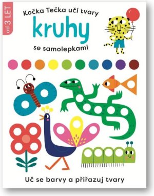 Tvarovaná samolepková knížka malého formátu obsahuje 16 stran a 8 listů opakovaně použitelných samolepek barevných tvarů, které děti dolepují do obrázků dle příslušné barvy a tvaru.
