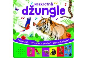 Zvuková knížka Nezkrotná džungle představuje zvířátka, jako je tygr, papoušek, slon nebo had.