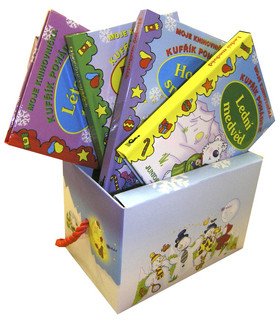 4 roztomilé zimní pohádkové knížečky s tvrdými listy a měkčenou vazbou - Dřevěný vojáček, Hodný sněhulák, lední medvěd a létající tučňák - všechny v kufříku, aby se vám nepoztrácely..
