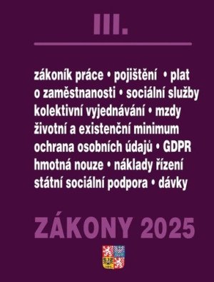 Zákony III obsahují právní předpisy pro oblast zákoníku práce, mzdových a platových předpisů, zaměstnanosti, pojištění, veřejného zdraví.