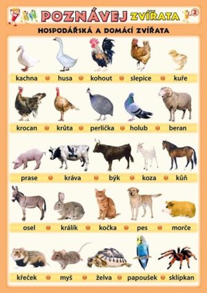 Názorné fotografie určené pro první seznamování se s hospodářskými, domácími a volně žijícími zvířaty.