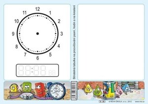 Stíratelná tabulka formátu A4 umožňuje žákům procvičovat psaní a hodiny.