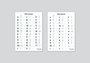Praktická pomůcka s psací abecedou Comenia Script universal v kombinaci s tištěnou abecedou.