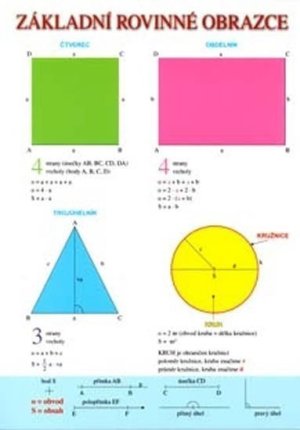 Přehledná tabulka obsahuje nejdůležitější matematické výrazy a vzorce rozdělené na část algebraickou a geometrickou.