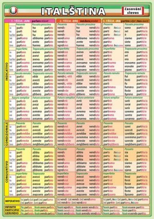 Přehledné tabulky časování italských pravidelných, zvratných a pomocných sloves.