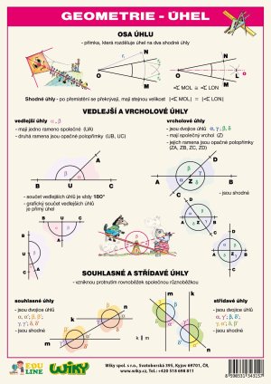 Naučná tabulka přináší přehledný souhrn učiva o úhlech.