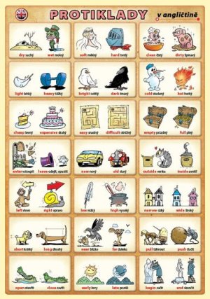 Anglické protiklady s českým překladem a názornou ilustrací u každého slovíčka pro snadnější zapamatování.