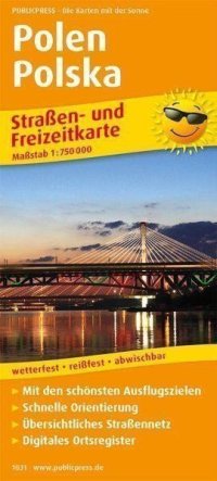 Mapa 1:1 000 000 - 2 jazyky do posledního detailu - Se samostatným rejstříkem názvů míst polsko-německý / německo-polský - mapa centra města Warszawa / Varšava - S obrázkem a textem - S lupou