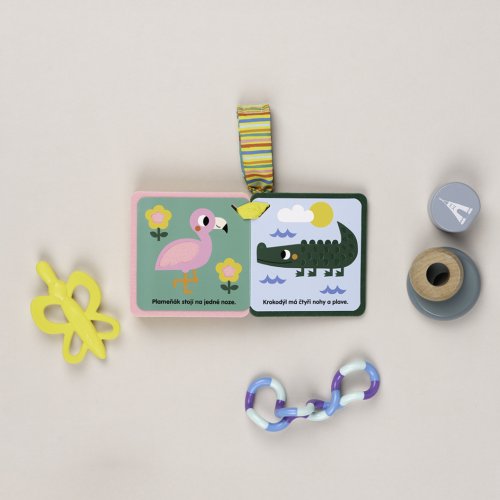 Ultralehká knížka s měkkými filcovými stránkami plná zvířátek a barev představí dětem tygříka a jeho exotické kamarády, haptické prvky pak přispívají ke komplexnímu smyslovému rozvoji těch nejmenších. Praktickým poutkem ji hravě připevníte třeba ke kočárku!